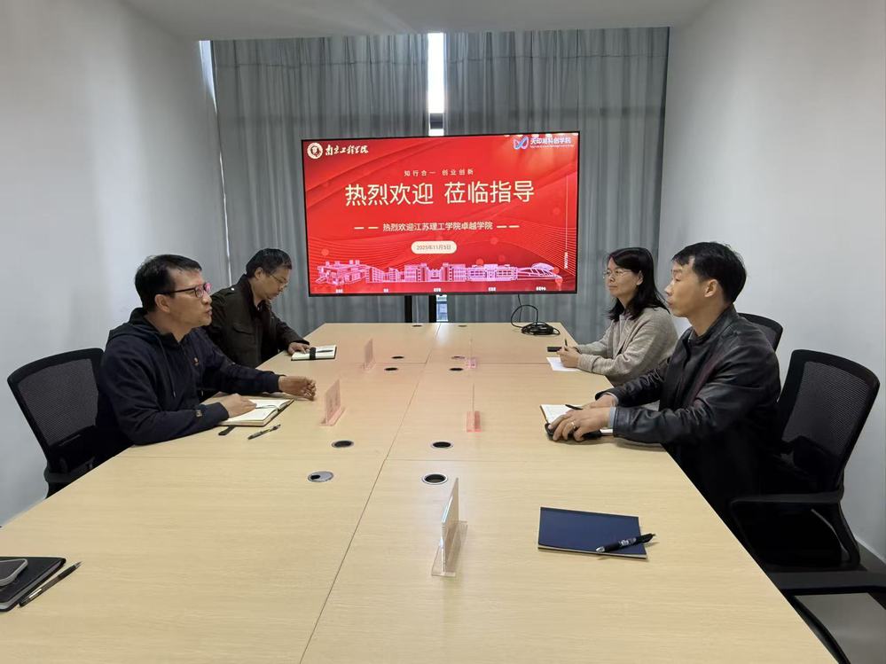 2025年11月5日上午,王田虎院长一行来赴南京工程学院天印湖科创学院就卓越人才培养取经调研,与南京工程学院天印湖科创学院陈巍院长和人工智能交叉复合系陈国军主任、就高端化、工程化、个性化的卓越人才培养进行了座谈,双方就优秀学生选拔方式、跨学科人才培养模式、应用型高层次师资队伍建设等进行了深入地探讨与交流。
